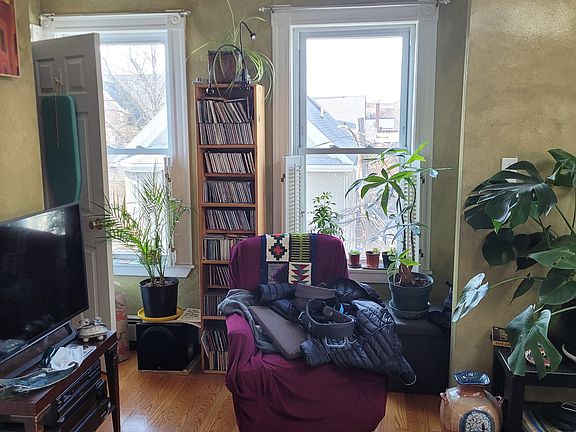 Davis Square Closest train = Davis Square (Red Line) 2 bed/1 bath (third floor, top unit) Beautiful open kitchen/living room with skylights and lots of natural sunlight Beautiful granite countertops and cabinets Stainless-steel appliances Air conditioning Hardwood floors throughout Laundry in the building Shared backyard Avail Date Now. 1 year.
