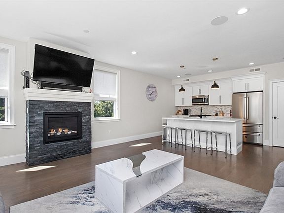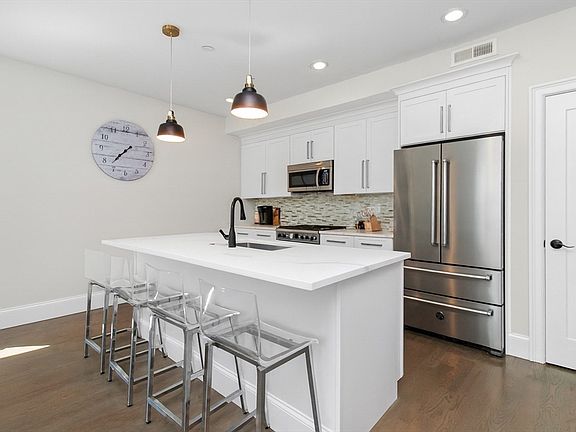 Pristine penthouse living in Dorchester's coveted Clam Point! A rare find 2 bed 2 bath w/ almost 1,300 SF on one level w/ 2 off-street parking spaces. This 2018 exceptionally built unit boasts a wide open floor plan w/ gas FP in living room, kitchen island w/ seating for 4, top of the line SS appliances w/ range hood, quartz counters, front glass railing deck, full guest bath, primary bed w/ an inviting deck, walk-in closet w/ custom built-ins, en-suite bath w/ enclosed glass shower, guest bed is generously sized & also has custom built-in oversized closet. No detail has been overlooked: immaculate HW floors throughout, recessed lighting, Central AC, in unit W/D, surround sound speakers, high ceilings, excellent natural light, ample closet space thru-out. Located on a dead end street in an quiet neighborhood w/ easy access to the T, highway, and Dorchester shops/restaurants. AVAILABLE JANUARY 1ST. No pets.