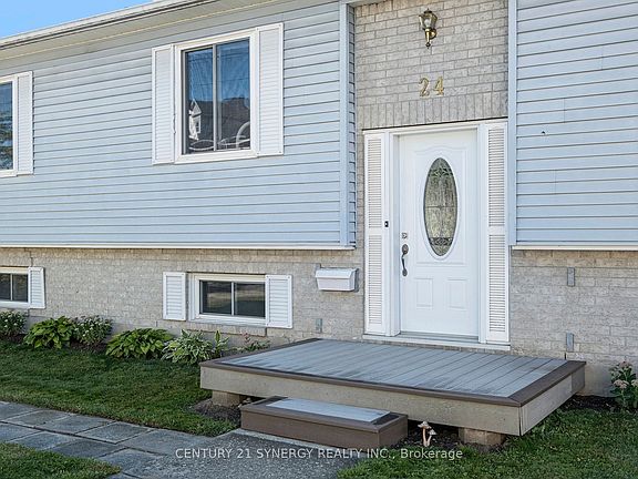 Welcome to 24 Elm St. E. Smiths Falls. A 3 bedroom raised bungalow with a full finished lower level featuring family room, 4th bedroom or home office, games room area, utility/laundry room with plenty of storage area. On the main floor you'll find a kitchen with lots of cupboards and counter space. L Shaped Living/DIning room, 3 bedrooms, 1 bathroom, a back hallway accessing the deck and yard. Updates: furnace new in 2019, Shingles 2020, garage door replaced recently 2025, front steps 2025, back deck 2024. Appliances included as is. ducts cleaned recently.