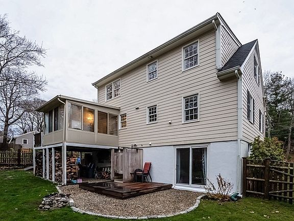 Move right in to this well maintained Cape in the village of Magnolia with seasonal ocean views. Gorgeous oak flooring throughout. Choose to eat in the kitchen, formal dining room or in the window infused three season porch overlooking the private back yard. Enjoy the fireplace/woodstove in the cozy living room or bring the gang downstairs to the finished basement with sliders out to the patio with fire pit. The large flat fenced in yard is adorned with stone walls terracing the yard that fades into the woodline. Outdoor shower with hot /cold water lets you rinse off after a day at the nearby Magnolia beach. Offers first floor bedroom. Plenty of room to expand if you wish. Close to historically beautiful Magnolia pier, Shore Road and West Pond. At the end of quiet Englewood Road is s path of conservation land that leads all the way to Magnolia Woods and on to Ravenswood Park. Close to trains and highway.OFFERS DUE MONDAY AT 12 NOON- SELLERS WILL REVIEW TUESDAY DEC 1