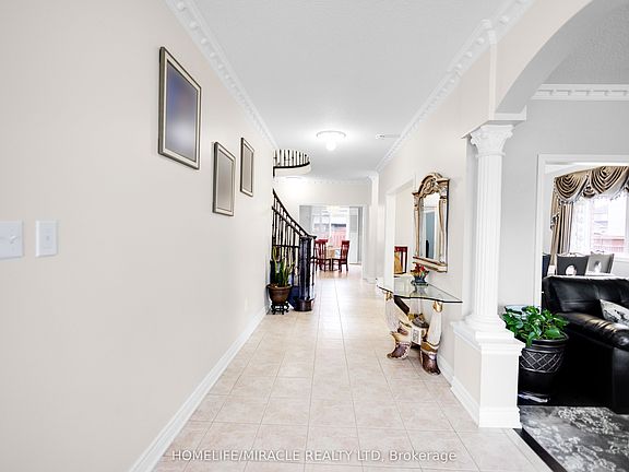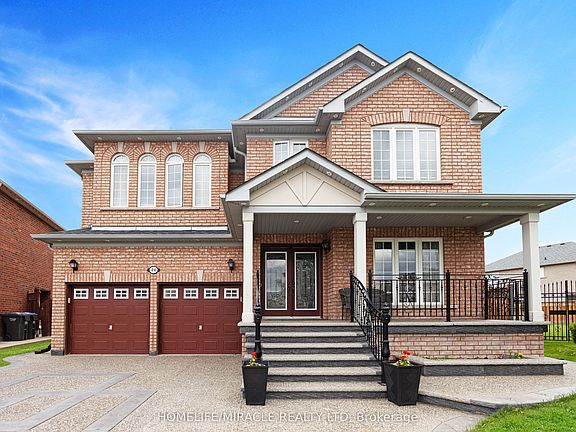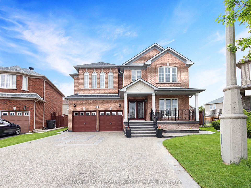 Welcome to this stunning and well-maintained premium pie-shaped lot in a family-friendly cul-de-sac, proudly owned by its original owner in a highly desirable neighborhood. Approx. 3000 sqft, this house features spacious 4+2 bedrooms, 5 bathrooms, 9' main floor ceilings, crown molding, California shutters and drapery, central vacuum, S/S appliances throughout, and custom chandeliers. Recently upgraded staircase with iron pickets and hardwood floors throughout. The main floor offers separate living, dining, and family rooms, while the second floor features three full washrooms, including a private ensuite in the master bedroom, a second ensuite in another bedroom, and a Jack-and-Jill washroom shared by two bedrooms. Separate side entrance, extra large gazebo, outdoor pot lights, and backyard shed. Updates include an exposed aggregate concrete driveway and patio, upgraded front door and custom iron outdoor railing. Located in a prime area near schools, parks, public transit, and shopping plazas, this home is a must see!!!