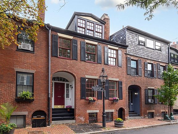Classic Bay Village 1899 single family 4-floor townhouse. 3+ bedrooms, 4 bathrooms, spacious flex space, double living room with beautiful fireplaces, dining room with french doors to patio, adjoining large open kitchen, top floor dormers enable spacious bedroom with en-suite bathroom. Beautiful sunlit windows throughout, original trim & fireplace details and oak & pine wood floors. Mini-split air conditioning. Washer-dryer in home. Great location: within walking distance of theaters, restaurants, Back Bay, South End, Chinatown, Ink Block/Whole Foods & downtown.