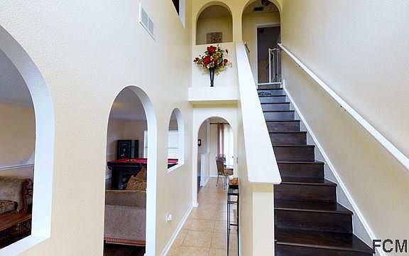 You are going to love this stately two-story four bedroom home located in a prominent neighborhood just a short walk to Matanzas High School. Featuring; BRAND NEW A/C system (with 10-year transferable warranty), four bedrooms, 2 and a half bathrooms, , gorgeous engineered wood flooring, new carpet & tile throughout, elegant trim and crown moldings, stainless steel appliances, granite countertops and rich wood kitchen cabinetry. The utility side of the home features its own half bathroom, large laundry room and has a private entry to the backyard. The kitchen boasts a large preparation island, two large pantries, designer backsplash, & crown moldings. This home is good in size but does not feel overwhelming for a couple but can comfortably accommodate a sizable family too. Lets not forget that Princess Place preserve, the Conservatory golf club, and Palm Coast's nicest & newest park (James Holland) are all within biking distance. Come on over for a visit today!