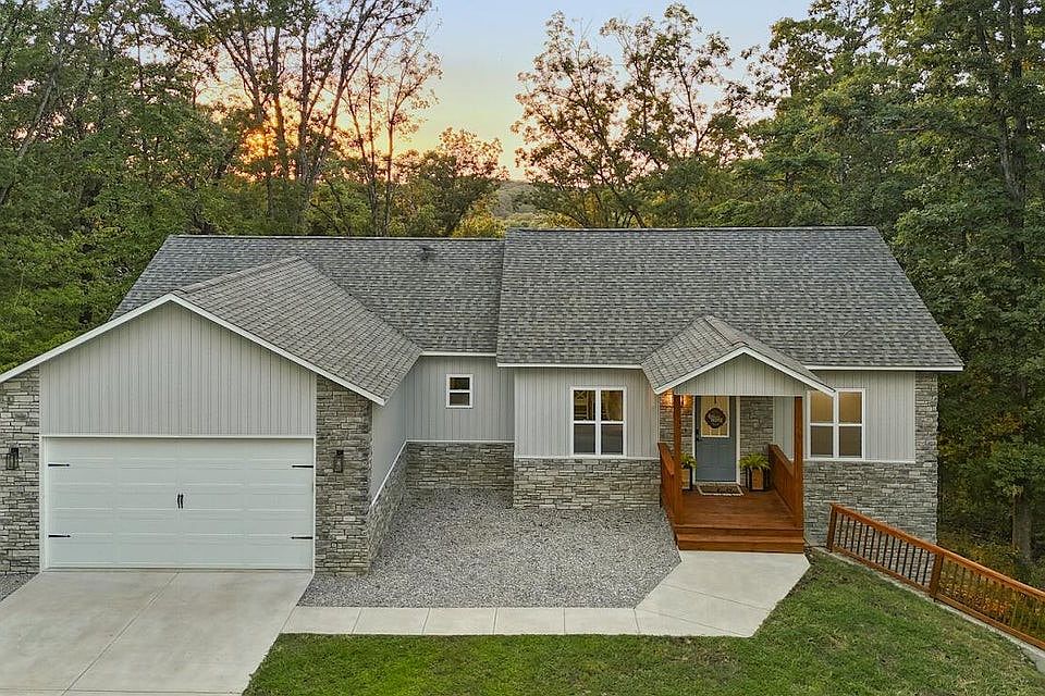 Welcome to 24 Flint Lane! Multigenerational living dream! This 2 year old, well-cared-for home offers over 3,000 sqft with 4 bedrooms and 3 bathrooms on 7+ private acres. Secluded from town yet only 15 minutes to Pea Ridge and 30 minutes to Downtown Bentonville or Rogers, it delivers the perfect balance of privacy and convenience. Step through the front door into a bright, open floor plan where the kitchen and living room flow together seamlessly, complemented by a split bedroom layout for added privacy. The modern kitchen includes a pot filler and spacious walk-in pantry, while each bedroom boasts a large walk-in closet. The full walkout basement features a wet bar and washer/dryer hookups, making it ideal for a second living area or in-law suite. Outside, a covered back deck provides the perfect spot to take in stunning west-facing sunsets. With a driveway less than 200 feet from pavement and fiber optic internet coming soon, this home checks all the boxes for modern country living!
