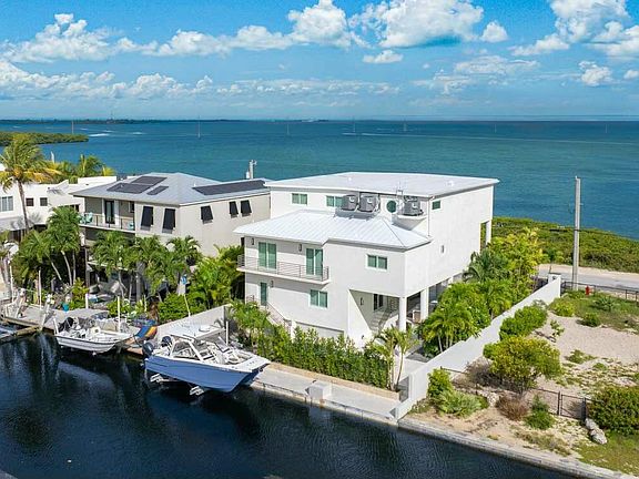 Fully renovated in the last 4 years, this 5-bed, 5-bath, exquisite gated estate with its brand new resort-style pool, and Chef's kitchen boasting new Sub-zero, Wolf, and Miele appliances, offers 2 primary suites on the 3rd floor with a private balcony and new interior 3-story elevator! This waterfront Key Haven estate offers a full length concrete dock and 15K lift, while the stunning indoor/outdoor integration invites you to savor the idyllic surroundings. The 4,500 SF of luxurious living space harmonizes with the tranquil beauty of its environment, featuring breezy outdoor spaces and light-filled interiors. Every detail has been thoughtfully designed for refined living, from the Hubbardton Forge lighting to the expansive walls of impact windows that frame breathtaking views of the turquoise Gulf waters. Enter through a grand entryway with a sweeping staircase and elevator into a spacious Great Room perfect for entertaining. The Chef's kitchen is a culinary masterpiece, equipped with high-end, stainless appliances, striking quartz countertops with a waterfall edge, and a breakfast area offering picturesque canal views. Dine in the elegant dining room or al fresco on the sprawling waterfront covered veranda. Guests will revel in the comfort of three well-appointed en suite guest bedrooms, one equipped with a steam shower, while you retreat to one of two third-floor primary suites, featuring spa-inspired bathrooms complete with Hansen & Bringle cabinetry, expansive walk-in showers, and terrace perfect for soaking in Keys famous sunsets. For added convenience each floor includes a laundry area and kitchenette, making life's conveniences just steps away. After a day on the water, dock your boat, take a refreshing dip in the brand new custom pool, or cook your fresh catch in the outdoor kitchen. Situated within a peaceful, established neighborhood yet just minutes from the magic of Key West, this one-of-a-kind Caribbean masterpiece has it all.