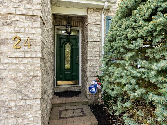 With over 2000 sq.ft. of living space, this elegant expanded Four Seasons Manalapan Burnham model is located on a cul du sac where privacy abounds! Note the timeless brick front surrounded by abundant landscaping. Enter viewing the living and dining rooms with hardwood flooring, recessed lighting, and crown molding. There is a spacious kitchen with stainless appliances including a double oven; granite counters and island, tile backsplash, ceramic flooring, pantry along with a separate eating area with a bay window. The family room has a gas fireplace, recessed lighting, ceramic tile flooring, and access to the brick patio and ultra-private backyard with an electric awning. The expanded primary bedroom suite with its dramatic tray ceiling and wood floors, has high hats, sconces, and a bay window. A private bath with shower, jetted tub, double vanities and huge closet complete the picture. There are 2 additional bedrooms each with ceiling fans, recessed lights, wood floors, and ALL the bedroom closets have closet organizers. The main bath has a tub with a frameless shower door and granite sink. Laundry room with washer and dryer and sink leads to a two car garage which houses a staircase leading to bonus attic storage. Included in this sale are 3 wall-mounted TVs, an electric fireplace in the primary bedroom, and an additional refrigerator in the garage. All of this at the prestigious Four Seasons at Manalapan community, featuring amenities such as a beautiful clubhouse with a full gym and ball rooms, indoor and outdoor pools, bocce, pickleball, tennis, etc.
