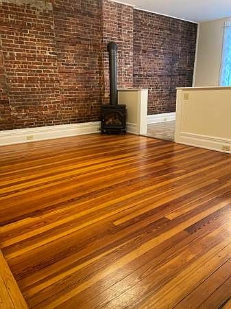 Exposed brick wallsGas fired wood stoveOnsite washer and dryerElectrical outletsHigh ceilingsPlenty of closet spaceHardwood floors