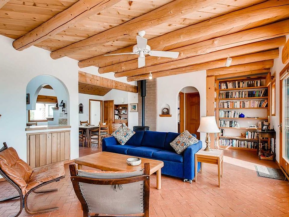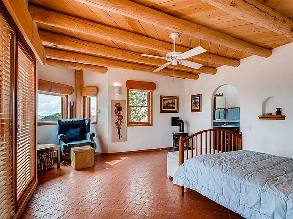 Drive down the meandering, freshly graveled drive to view this special property! A one owner, Leif Backe built home in Eldorado, it has been beautifully maintained & designed with modern lifestyles in mind despite being built almost 30 years ago. Highlights include: three bedrooms, split floor plan, all brick floors, (no carpet!), hand built wood doors and cabinets, vigas in most rooms, two high efficiency gas stoves, oversized Pella windows, and a spacious heated studio tucked in between the two car garage and main house. The passive solar design includes many windows facing south for year-round sunshine and warmth. Terrific Southwestern and NE views and open spaces surround the home.