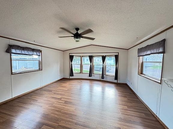Open House, Saturday October 11th from noon to 1:30 p.m. This 3-bedroom, 2-bath mobile home is located in Vintage Acres. It offers an open-concept layout connecting the living room and kitchen area. The home includes three bedrooms, including a primary bedroom with its own bathroom. Some recent updates have been made, including a new electric hot water heater in 2024 and central air conditioning installed in 2023. The windows have also been updated. Outside, there is a maintenance-free deck with a 2024 awning, as well as a hot tub that will stay with the property. Two storage sheds are also included. Electric: $175/mo Gas: $65/mo average