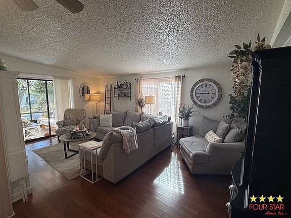 This well-maintained 2-bed, 2-bath home located in an active 55 plus community features laminate flooring and plantation shutters throughout. The spacious kitchen is equipped with stainless steel appliances and a pantry and opens to the dining room, which includes a built-in buffet perfect for additional storage. The living room provides plenty of space for relaxing or entertaining, while the large primary suite includes an en-suite bathroom and a walk-in closet. The home also offers two screened porches, perfect for enjoying the Florida weather year-round. Located close to shopping, restaurants, and the beach, this community provides excellent amenities for an active lifestyle. Furniture available. Four point inspection available.