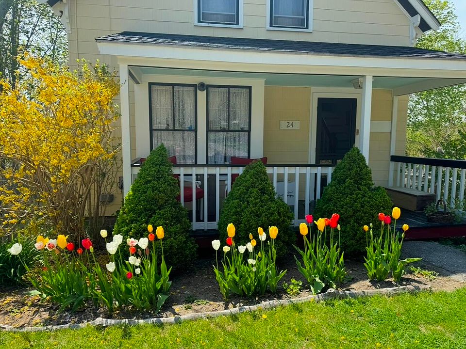 A peaceful location. Walk to theater, dining, pharmacy, library, and post office.
