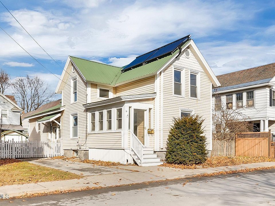 Welcome to 24 Goodwin Ave! Thoughtfully remodeled from top to bottom, this 4-bedroom, 1.5-bath home is ideally located just minutes from downtown Glens Falls and less than 20 minutes to the heart of Lake George. The brand-new kitchen highlights sleek cabinetry, updated countertops, and stainless steel appliances. You'll love the beautiful hardwood floors throughout, the cozy dining area, convenient first-floor laundry, and an enclosed front porch perfect for year-round use. With solar panels to help lower energy costs, this home offers comfort, efficiency, and an exceptional location—nothing to do but move in and enjoy!