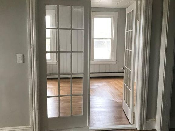 Available , this apartment is half a duplex and boasts 3 large bedrooms. Over 1600 square feet of living space. Hardwood floors throughout. Eat in Kitchen with stainless appliances. Dining room and French doors to living room or can be used as a spare bedroom. Fenced in back yard. Private driveway that fits 2 cars. Tenant pays for heat, hot water and electricity. Newer high efficiency gas furnace. Landlord pays for water and sewer. Located at end of street with walking distance to NFA. Credit and background check required. 1 year lease. owner pays for water. renter is responsible for gas and electric. first/last and security due at signing. no smoking allowed inside. small dog allowed ( up to 20 pounds)