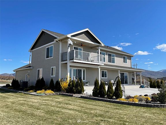INCREDIBLE 360 Degree View-Mountains, Valley, & City -LARGE SHOP-Just Over 2.5+ Irrigated Acres-Home features 4 Bedrooms/4 Bathrooms, primary bedrooms on both floors. Upstairs primary bedroom has spacious private deck. Living room, dining room w/oversized slider out to wrap around porch & large patio, kitchen w/breakfast bar island & open concept, family room w/slider out to covered back porch & patio, & large utility room w/tons of extra cabinets. Custom light fixtures. Beautifully landscaped yard. Attached 2 car garage insulated & sheet rocked w/utility sink. Detached 3 car shop 1,020 square feet on both levels. Storage shed stays. Duck Lake Water Assoc. for domestic. Okanogan Irrigation District for yard. $574,900 H-3033/MLS1916290