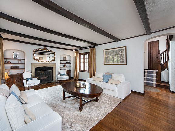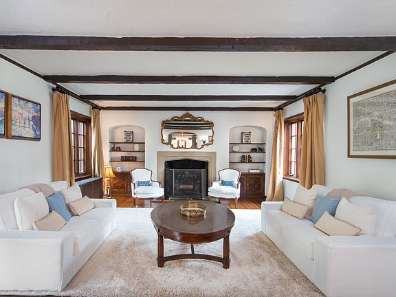 Step inside 24 Haddonfield Road, a charming Tudor style home with 360-degree views of the neighborhood, nestled in beautiful Short Hills. This four bedroom, three full, two half bath home is adorned with custom built-ins and high end finishes throughout. Although this home is fully updated, the original floor plan-including the space's captivating original details remains intact. Dark wood exposed beams, arched doorways, vaulted ceilings, and stucco walls bring you back in time but the brand new granite and marble kitchen and updated bathrooms contributes to this home's completely move-in ready status. Drive up the quiet, winding roads of this ideal Short Hills neighborhood to find 24 Haddonfield's large, grassy yard encircling the uniquely detailed home. Notice the freshly painted stucco exterior complemented by brand new, energy efficient windows. Old world charm is immediately apparent once you notice the traditional diamond grid windows and detailed casings. Custom landscaping and a bluestone walkway lead you to the front door. Walk inside to find immaculate oak hardwood floors, and then gaze up at your breathtaking vaulted ceilings with exposed beams. The main staircase to your left takes you up to your easily accessible Powder Room covered in marble and dressed with a custom window covering. Show off your favorite china or glassware in two original built-in units flanking your fireplace in the enormous Living Room on your right. Gigantic, custom windows pour in natural light to emphasize the glowing floors and exposed ceiling beams. A Sunroom at the back of the house gives you views of the expansive back yard and patio, and a fantastic space to relax or give the kids some space to play. Shut the custom accordion pocket door when you need privacy. Move through the elegant archway into the formal Dining Room where the hardwood and exposed beams continue to impress juxtaposed next to updated features such as the brand new chandelier. Undoubtedly, the Kitchen is a true masterpiece. The new granite countertops complement the all-white custom cabinetry that includes a pull out pantry, spice racks and a marble backsplash. A built in stainless steel Bosch microwave hovers over the electric Bosch stove and oven. A family of four can sit down to breakfast at the marble peninsula that includes lots of legroom and deep storage. Polished nickel fixtures compliment the exquisite ceramic floor. In the rear hallway off the Kitchen, you'll discover a convenient side entrance, as well as access to the first floor bedroom, where a giant walk-in closet and full bathroom crafted in marble and ceramic will wow guests and family alike. Head back up the main staircase with chestnut railings and you will be welcomed by three more large Bedrooms. Inside the Master Bedroom notice how chandelier sparkles in the natural light, serving as a magnificent centerpiece to the room and take note of the original archways, which honor the time period of the home. Through the fully renovated en-suite jack and jill bathroom, complete with polished nickel fixtures and marble throughout, you will be connected to Bedroom #2, which boasts built in features inside the spacious closet. Across the hall you will find Bedroom #3, which flaunts a full en-suite bathroom covered in marble and renovated to perfection.