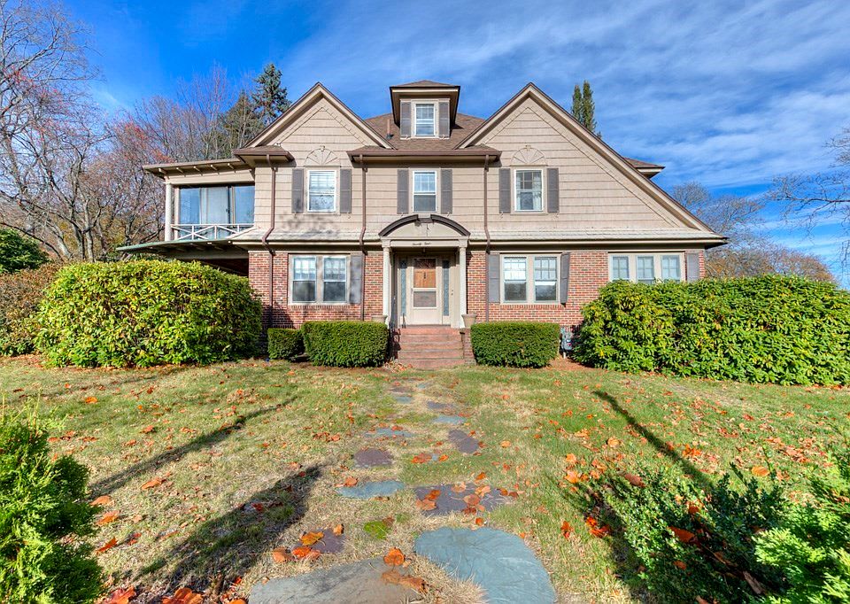 Shingle style home with an emphasis on roof lines that dominate and create a high level of interest. Predominate use of wood shingle with an accent of brick work highlighting the facade is evident as you approach the front covered entry. Center foyer floor plan flanked by French doors that open to the front to back fireplaced living room and the formal dining room with a built in corner storage cabinet. Eat in kitchen with granite counter tops and a tile floor just off the family room. Three bedrooms on the second level with 2 full baths plus a fourth bedroom once used as a kitchen area when this property was utilized as a 2 family home. Hardwood floors, crown moldings, walk up attic with plenty of head room if additional living space is needed. Just off June Street provides easy access to local conveniences, highways and local universities.