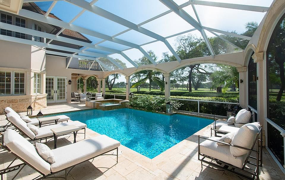 Exquisite golf course home with south eastern exposure offers expansive views of the eighth fairway of the Dolphin Course. This ten year young home has been meticulously maintained and completely updated in 2020 with attention to every detail. The 5,031 square foot home has 4 bedrooms/4 bathrooms, office, powder room, upper and lower level laundries, and elevator. Exceptional outdoor living space includes two dining areas, cozy seating area with gas fireplace and large screen television, summer kitchen, pool with swim jets and hot tub, and a full cabana bath. Newly landscaped including irrigation and lighting. Two car, two cart garage with air conditioned work shop. Offered furnished and absolutely turn key! .