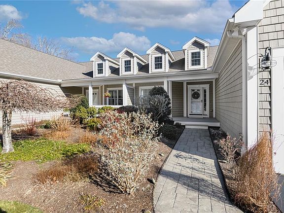 Nestled in a tranquil 11-unit private complex, this immaculate 2,550-square-foot custom condo is filled with natural light and features an open, inviting floor plan. The kitchen has granite countertops, stainless steel appliances and a seamless flow into the dining and living areas. A gas fireplace, visible from the kitchen, dining area and living room, creates a warm and cohesive space for gathering and relaxation. Vaulted ceilings add to the airy ambiance. The first floor features gleaming hardwood floors, a luxurious master suite with a walk-in closet and a bathroom with a tiled shower and soaking tub. An office/den, a second full bathroom and a laundry room complete the main level. The second floor offers a bedroom, a third full bathroom and an unfinished bonus space providing potential for customization. The two-car garage includes a staircase leading to additional ample storage space. An oversized deck offers serene views of a pine treed meadow, providing the perfect backdrop for outdoor enjoyment. Ideally located near Route 4, easy access to Wickford, Jamestown, Newport, and South County’s beaches and shoreline. Pets: 30 pound limit Add (180 Hamilton Allenton Rd) to your GPS to guide you to the condo complex.