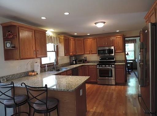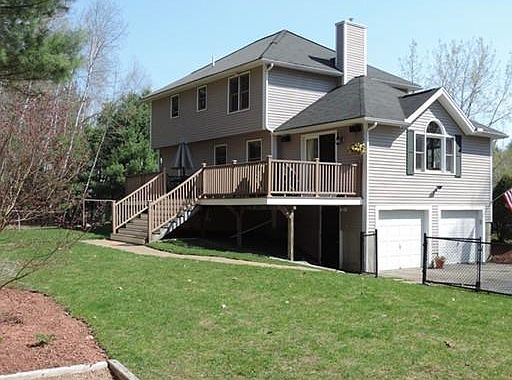 Here's your chance to own your own home in a beautiful neighborhood. Large lots and beautiful homes surround this center entrance colonial. The grand entrance way opens to the formal dining room and living room. Take a walk down the hall and you are in a wonderfully up to date kitchen, perfect for entertaining. There is a breakfast counter and space for a dining table as well, The sun filled, fireplaced, family room is open to the kitchen and has slider access to the enormous deck. The fenced in yard is perfect for all sorts of entertaining, there is a fire pit, horseshoe area, and even a garden. Completely new septic system installed in 2013. This house is not to be missed.