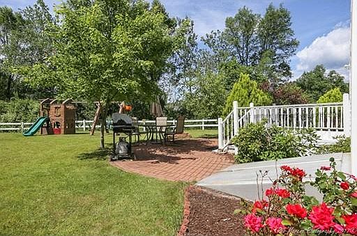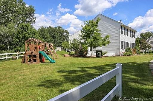 SUPER CONVENIENT, EASY-CARE 3 bedroom 2.5 bath open-floor-plan colonial near back of north Chelmsford's Lamplighter Green. Private fenced rear yard, deck, patio. Pull right in to garage just steps from kitchen. Open floor plan ideal for smaller colonial built in 1997 offers flexible casual dining with oversized kitchen or choose more formal dining. Mudroom area off garage plus half bath. Central air, gas heat. Front door entry to corner fireplace in living room and adjacent family room open to 23' kitchen that functions well for busy day-to-day activities. Full sized dining area open with new slider to deck. Plenty of kitchen cabinet storage. Natural light. Master bedroom with bath, marble topped vanity, tiled shower. Both additional bedrooms are good sized and share an updated bathroom. Additional finished living area in basement makes perfect spot for work-from-home or exercise plus a playroom too. Laundry hookups in basement. Newer windows, slider, entry door. BEST HOME UNDER 20 yrs