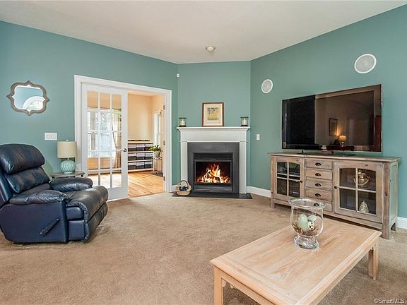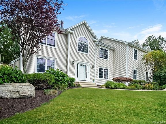 Pristine beauty comes with this 3200+ sq.ft. Colonial situated on a private 2.8 acre lot at the end of the cul-de-sac offers easy access to highway for commuting and shopping. The professionally landscaped lot with irrigation system offers private rear yard, stone patio and deck leading to a hot tub to enjoy the peaceful built-in cascading stone waterfall. Enter into a spacious 2 story foyer with turned staircase to the 2nd floor. The main level with 9' ceilings offers open concept living including office with built-ins, gas fireplace and french doors; family room with 2nd gas fireplace offers 3 palladium windows overlooking your gorgeous backyard; opens to a warm & welcoming kitchen with stainless appliances, center isle 2 tiered breakfast bar, granite counters & large breakfast area; formal dining room features picture framing accents and hardwood flooring; spacious mud room entry from garage features extra cabinetry and built in bench making the perfect drop zone for backpacks as well as laundry area. 2nd staircase to the 2nd floor takes you to a fabulous Great Room with full wall of built-ins, cathedral ceiling with ceiling fan, its own ductless heating/cooing system, wet bar, surround sound speakers & cherry finished hardwood floors. Master bedroom suite with tray ceiling, a 3rd gas fireplace, walk-in closet & full bath with whirlpool tub and tile shower allowing you the perfect ending to a stressful day. 3 additional ample sized bedrooms complete the 2nd floor.