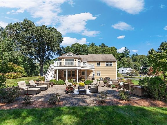 Exquisite & unique, beautifully expanded home in highly coveted, tranquil location has been continuously updated by owners & polished to perfection inside & out (+ BRAND NEW ROOF!). Impeccable, versatile space that can adapt to any lifestyle. Sited atop an impressive, landscaped lot that abuts conservation land & boasts an amazing backyard oasis w/expansive patio & deck for entertaining or to relax & enjoy the serenity of your surroundings. 2 car gar & large driveway are also yours – but wait till you step inside. Gracious DR w/fp flows to stylish custom kit w/cherry cabinets, granite counters & breakfast bar, & dining area w/window seat. Gorgeous LR w/bank of windows & distinctive ceiling offers access to deck. Recently remodeled primary BR en suite includes adjacent BR transformed to walk-in closet/sitting room of your dreams. BR & bath complete this level, then step down where beauty & space continue to large FR w/fp & built-ins, BR, bath, kitchenette & more. Exceptional home!