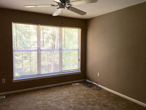 The primary bedroom offers a private retreat with natural light, ceiling fan, and its own bathroom, complete with tiled floors, a soaking tub, tiled bath, cabinet storage, and a vanity mirror. The two additional bedrooms also feature wall-to-wall carpeting, ceiling fans, and closets, making them ideal for family, guests, or home office use.