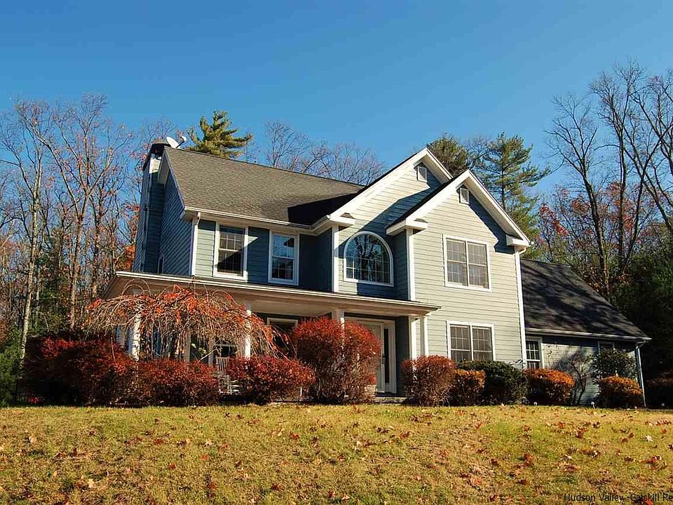 Located at the end of a town maintained road this beautifully constructed contemporary farmhouse sits high on a knoll overlooking a magnificent vista of mountains. Just minutes to the center of historic Stone Ridge, this home offers a perfect combination of privacy and quiet, without total isolation. This is a great weekend or full-time home, comprised of easy flowing rooms. Guests will be able to hang out an enjoy the glow of the fireplace while you cook wonderful meals. And entertaining will be a breeze in this custom gourmet kitchen sporting stainless steel appliances and granite countertops. There is even a built in wine refrigerator! From the marble-topped vanity to the deep soaking tub, the master bathroom is a dream. Friends will be pleased to lounge in the screened porch or float in the pool all summer long! The full finished basement is a great place for a game room, office, yoga studio or anything else you can dream up! Your discerning buyer will appreciate the extraordinary attention to detail visible throughout this custom built home!