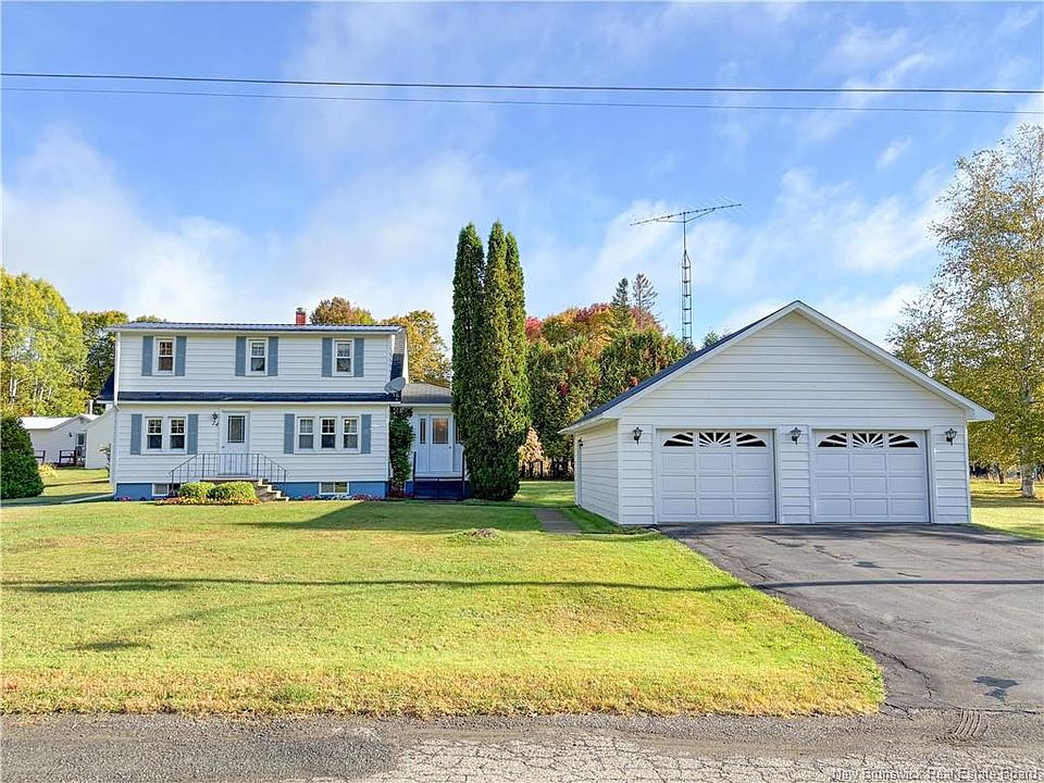 We are pleased to present this immaculate home, ideally situated on a quiet dead-end street with just under half an acre of land, perfect for a new family to create lasting memories. The property offers excellent exterior features, including two paved driveways, a concrete septic system, drilled well and easy-to-maintain vinyl siding. You'll also find a large storage building, a clothesline, and ample space for gardening. Inside, the main floor welcomes you with a bright den and a convenient half bath. The living room features gleaming hardwood flooring, leading to a separate dining room and an eat-in kitchen. Upstairs, there are three bedrooms (please note that the windows are not egress) and a full bathroom. The concrete basement provides laundry facilities and abundant storage space. Comfort is assured year-round with an oil furnace for winter warmth and central air conditioning for summer cooling. The large detached garage offers adequate room for two vehicles, protecting them from the elements, along with generous space for mowers, snow blowers, and other equipment, plus a second level for out-of-season storage. The pride of ownership is evident throughout this property, making it a truly exceptional offering.