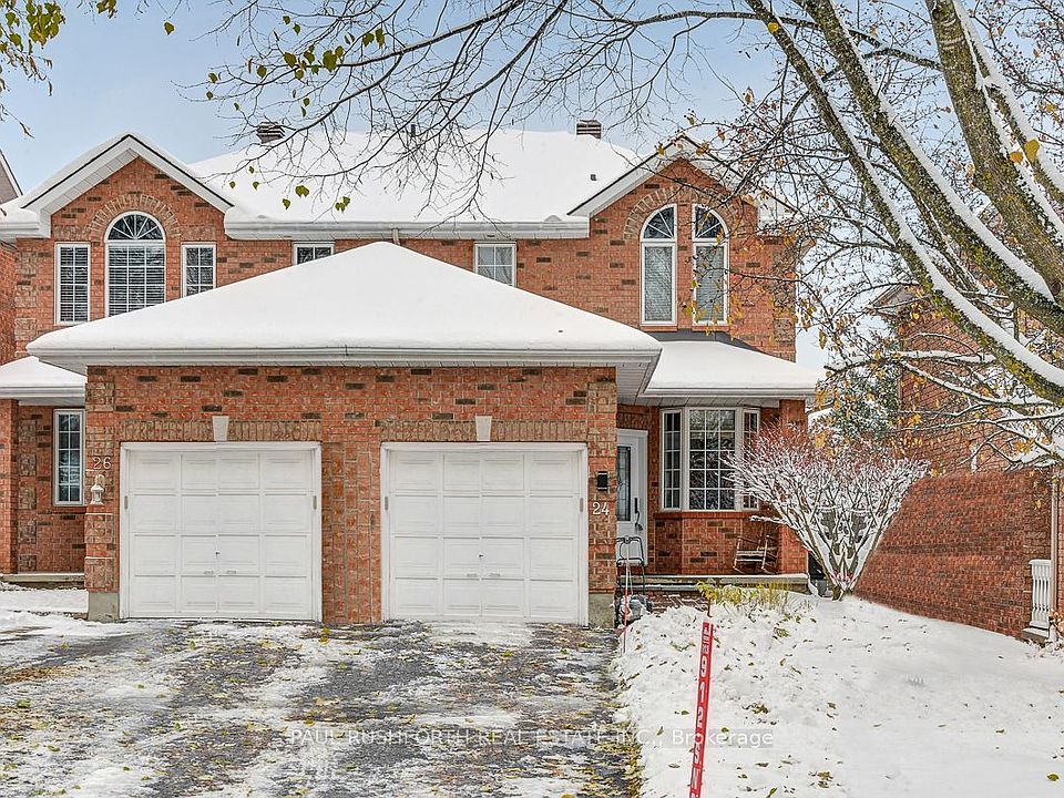 Beautifully maintained and updated full brick semi-detached home in sought-after Kanata Lakes one of Ottawas top neighbourhoods for families. Parks, top-rated schools, trails, shops Kanata Golf and Country Club, restaurants, Signature Centre and Centrum are just moments away. Hardwood flooring flows throughout the first and second levels. Bright eat-in kitchen overlooks the spacious backyard with a large deck and no rear neighbours perfect for relaxing outdoors in privacy. The finished basement adds extra living space for a rec room, office, or play area. Upstairs offers three comfortable bedrooms with updated bathrooms, including a full bath and convenient main-floor powder room. Move-in ready in an unbeatable location! 24 Hour irrevocable on all offers.
