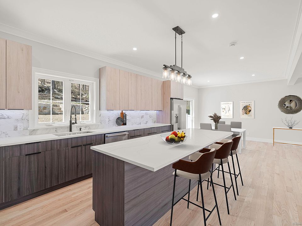Welcome to 24 Hillandale Rd - A Modern Masterpiece in the Heart of Danbury. Step into timeless elegance to this newly constructed, meticulously crafted residence located in one of Danbury's most coveted neighborhoods. A rare opportunity to be the first owner, this home blends modern design w/ luxe finishes, creating a sophisticated sanctuary for today's lifestyle. 4 lg beds, 2.5 baths & 2,751+ sq' of curated living space. The open-concept main level is bathed in natural light & features natural hw floors, stunning custom kitchen w/ sleek quartz counters, lg center island, & premium ss appliances - all flowing into a generous family room w/ statement fireplace & entertainment wall, perfect for gatherings & relaxed evenings at home. Upstairs, the primary suite is a tranquil retreat with dual walk-in closets, a luxurious spa-inspired bathroom complete with a freestanding soaking tub, twin vanities, & a glass-enclosed modern shower. 3 addl oversized bedrooms & a beautifully appointed full bath w/ double sinks complete the upper level. Ascend to the third-floor, offering an additional 400 sq' of heated, ready-to-finish space - ideal for home office, playroom, or guest suite. The lower level includes a versatile rec room, utility space, & a spacious 2 car garage. Tucked away on a quiet street yet minutes from shopping, dining and I84 for convenient commute, this property offers the perfect balance of privacy & accessibility. Move-in ready, thoughtfully designed, & waiting for!
