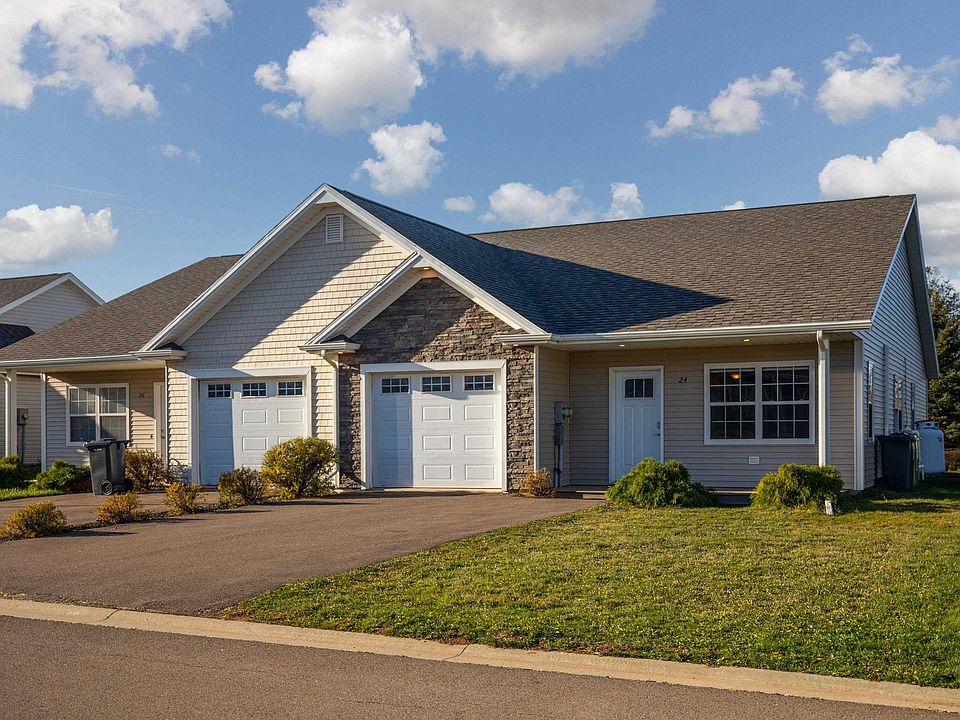 Welcome to 24 Holmes Lane, a beautiful semi-detached home offering comfort and style in a quiet, family-friendly neighborhood. This 3-bedroom, 2-bathroom home features an inviting open-concept main floor with vaulted ceilings, creating a bright and airy living space. The living/dining areas flow with ease into the kitchen, all designed for modern living. Kitchen is complete with white shaker cabinetry, a raised eating bar and walk-in pantry, providing extra space for kitchen and household items. The primary bedroom has a 4 piece ensuite bath and the two additional bedrooms offer multiple options for a home office space or fitness area. Large windows throughout the home allow for an abundance of natural light, enhancing the warm and welcoming atmosphere. Enjoy the convenience of a heated single-car garage with room for storage, as well as a large lot that provides the luxury to garden, play, or relax on the private deck. Ideally located within the sought after Lucy Maud Montgomery School system and just minutes from all the amenities of Charlottetown, this property offers the perfect balance of tranquility and city convenience. Whether you're a first-time buyer, downsizing, or searching for a well appointed family home, 24 Holmes Lane is ready for you. Please note that some photos have been virtually staged. All measurements are approximate and should be verified by the Buyer if deemed necessary.
