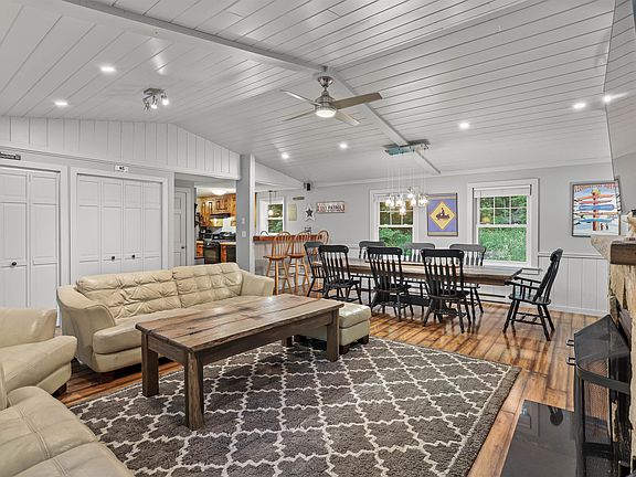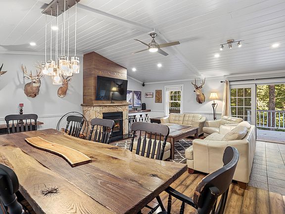 Tastefully renovated home in the desirable Chimney Hill community of Wilmington, Vermont. This open, spacious, bright, and cheery home has been thoughtfully updated. The main living floor features an open-concept layout with tall ceilings and a striking fireplace as the focal point. Three bedrooms and two baths, including a primary suite, complete this level. The lower level offers a cozy family room with a second wood burning fireplace, multiple overflow sleeping areas, additional bathrooms, and a great entryway with ample storage. Situated on a 1 acre +/- lot with a flat driveway, plenty of parking, and an attached one-car garage, this home is perfect for both primary living and vacation getaways. Community amenities include a large outdoor pool, an indoor pool, a gym, media and recreation spaces, tennis courts, basketball courts, a community-stocked fishing pond, and trail system. Harriman Reservoir boat launch and marina, ideal for boating, swimming, and lake recreation, are just minutes away, as is downtown Wilmington with its charming shops, dining, and entertainment options. Multiple ski mountains are also a short drive away. This home is move-in ready and an excellent choice for those seeking a primary residence or a vacation retreat.