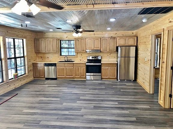 New Construction- Secluded Home/Cabin on 28.13 wooded acres...The Home/Cabin sits back off the road behind a board fenced gated entrance, ( not visible from the road), has 3 bedrooms, 2 bath, 1128 sf of living area,1416 sq ft total area, open floor plan, tin ceiling roof & lots of wood work giving it that rustic feel, central air & heat, all new appliances including washer, dryer, dishwasher, refrigerator & master bath with large walk in tile shower. The exterior will be low maintenance having metal roof, metal on 3 sides and logs across the front porch which extends across the entire front. The property offers great hunting, approx 12 +yr old planted pine with beautiful hardwood grove, newly surveyed, trails and great hunting. $229,500