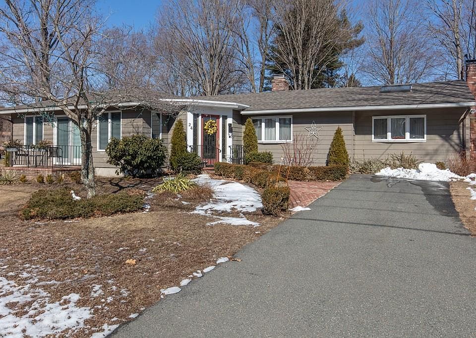 A MUST SEE! Spacious ranch style home located in one of West Peabody's most desirable neighborhoods-Jordan Acres! This completely updated elegant home offers so many living options.Enter to a gracious entry open to the formal living room (currently being used as a den), dining room w/fireplace, an extra lrg gourmet granite kitchen w/custom cabinetry, a spectacular family room w/cathedral ceiling,2 skylights & a brick fireplace, a huge formal dining room w/french doors & a slider to a front patio area (could be used as a bedroom), down the hall to an updated full bath w/double sinks & vaulted sky lit ceiling, a huge master with lots of closet space, laundry closet and a slider to rear patio(this room could easily be split into 2 bdrms). PLUS an additional X-large room w/sitting area, slider to the rear patio and its own entrance (great for in-law, au pair or teen suite. New gas heating and central air conditioning system.Large level lot. Huge brick patio area and a large storage shed.