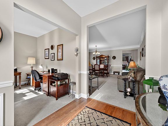 WELCOME TO WILDFLOWER AT WALLKILL — Orange County's premier 55+ Community! This elegant Tarrington model offers nearly 3,000 square feet of beautifully designed living space, combining comfort, sophistication, and convenience. Inside, you’ll find an open dining and living room combination creates the perfect flow for gatherings, while the expansive kitchen and family room with cathedral ceilings provide a bright and airy centerpiece to the home. There are two spacious bedrooms plus a versatile den, along with three baths. The primary suite features two walk-in closets and a private bath. The partially finished, walk-out basement adds tremendous versatility—perfect for entertaining or hobbies—while providing abundant storage space. Enjoy the outdoors on the extended deck complete with a retractable awning or relax on the lower-level paver patio overlooking the private grounds. This is one of the few homes in Wildflowers that offers a truly private backyard setting, with no neighboring homes in view on either side and peaceful natural views. Additional highlights include a new driveway (which can hold up to 6 cars!), newer air conditioning, extra-large windows that flood the home with natural light, a gas fireplace in the family room, and a newer range complete with built-in air fryer and convection cooking. Life at Wildflowers at Wallkill offers so much more than just a beautiful home—residents enjoy resort-style amenities, including both indoor and outdoor pools, tennis and pickleball courts, and a stunning clubhouse complete with fitness center, library, and social gathering spaces. Located just minutes from shopping, dining, Crystal Run Healthcare, Garnet Health Center, and all major roadways, this exceptional home offers the perfect blend of style, comfort, and community in one of Orange County’s most sought-after active adult neighborhoods.