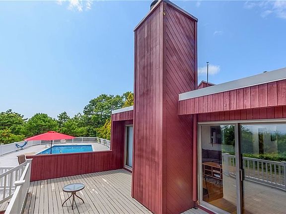 Ocean and pond views from this 3 bedroom contemporary, located up in the hills of Arrowhead Estates. While enjoying the views from this private location, one can cool down in the swimming pool; or, reside in the shade on the screened porch. Wonderful outdoor living at its best on the spacious decking. During the cooler months, warm up in front of the wood stove in the living room while enjoying the outdoor/water views. The serpentine driveway is highlighted with wooded acreage and adds to the private setting. Master bedroom and bath located on the main living area. Vaulted ceilings create an open, expansive feeling with sliders leading to the outdoors. Two bedrooms in lower level walk-out. Property has an excellent rental history. Can be sold furnished.