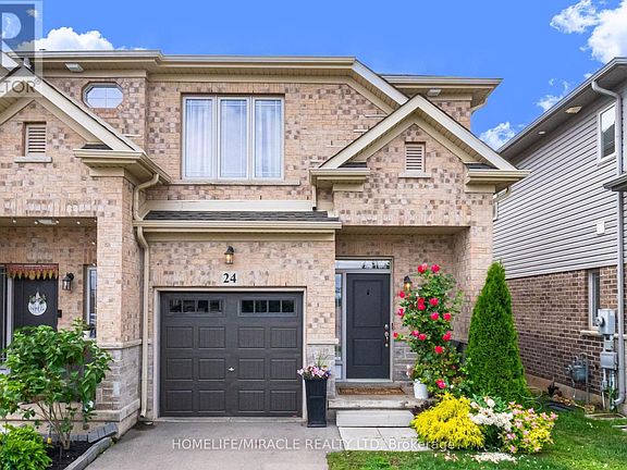 Presenting 24 KINGSBOROUGH DR. An Exceptional End Unit Freehold Townhouse with 1522 Sq Ft in a Sought after Stoney Creek Mountain. House offers an amazing Location, Steps to All Major Retail Shopping and Minute to Red Hill Expressway. House is absolutely Loaded with Upgrades including an Open Concept Main Floor Plan, 9ft Smooth Ceiling, Freshly Painted (Jun 2025) . Modern Kitchen with High end Ceramic, Extended Kitchen Cabinets, Elegant Backsplash, Granite C/T, Breakfast Centre Island, Under Mount Kitchen Sink and Stainless Steel Appliances. Open Concept Living Room with New Hardwood Floor (2025) and Pot Lights. Dining with Walk Out Patio Doors Over Looking to a Tastefully Landscaped Concrete Private Backyard for Summer enjoyment. Leading to Second Level Boasts Hallway Hardwood Floor, Master Bedroom with W/I Closet and 4Pc Modern Ensuite with Standing Shower. Bright Spacious and Sun Filled 2nd and 3rd Bedrooms. Visitor Bath with High end Ceramics. Conveniently Located 2nd Level Laundry with Double Door and Uppers. Very small Road and Snow Removal POTL Fee, Private Driveway and No Side walk. This House Exemplifies Top Quality Finishing. Book your showing with Full Confidence. (id:41440)