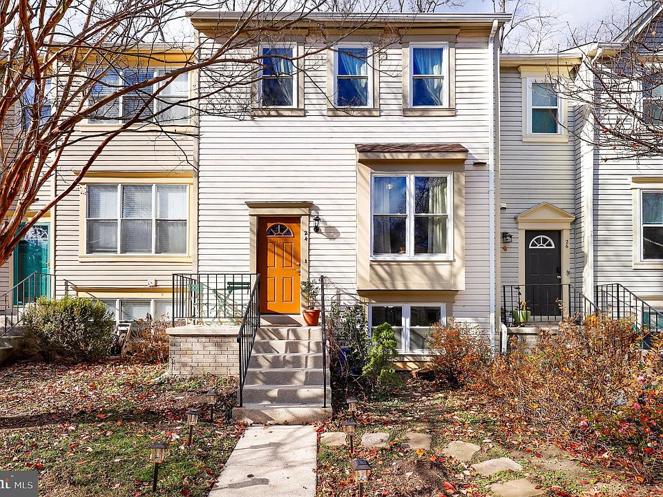 Nestled on a quiet street, this inviting townhouse blends comfort with modern convenience. The main level features an upgraded eat-in kitchen with maple cabinets, granite countertops, and stainless steel appliances, a formal dining room with hardwood floors, and a bright, spacious living room. French doors open to serene, tree-lined views, perfect for enjoying quiet mornings or relaxed evenings on the patio. Upstairs, you will find the generous primary bedroom offers vaulted ceilings and an en suite bath. Two additional bedrooms and a full bathroom complete the upper level. The fully finished basement offers a versatile retreat, featuring a spacious recreation room that can transform into a playroom, media room, or family room, full bathroom, bonus room ideal for a home gym, office, or bedroom, and laundry room. Fresh paint throughout with recent updates including HVAC (2018), Hot Water Heater (2022), and a new electrical panel, circuit breakers, and service entrance cable (2024). Great location with easy access to I-495, I-95, 97, and Rt. 29, parks, and shopping. Schedule your showing today and welcome the new year in your new home!