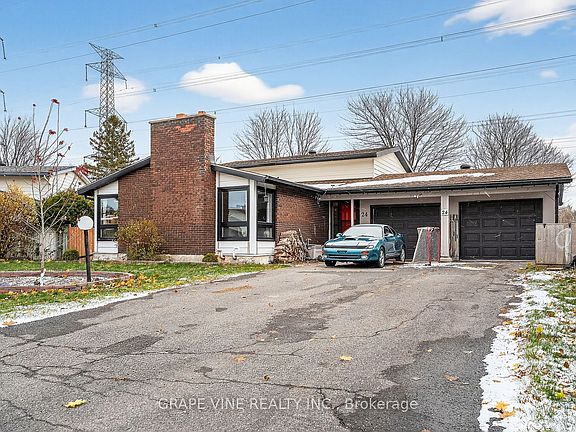 A well-maintained 4-bed, 2.5-bath back-split on a deep, private lot with no rear neighbours, backing onto the hydro corridor. Built in 1975 and updated throughout, the home offers approx. 1,500 sq ft above grade plus a mostly finished basement (ceiling not installed).Key Features: Oversized 2222 double garage - rare for the area and ideal for a workshop, storage, or toys Back-split design with three functional living levels plus basement Updated mechanicals: Windows (2019), Furnace (2019), AC (2020), Electrical panel (2023) Interior updates: Main-floor flooring (2020), Bedroom/upper-hall carpet (2024), Basement flooring (2024), Select fresh paint/finishes, the Kitchen (2022) and the attic insulation (2022) Exterior upgrades: Rebuilt deck (2024), fully replaced garage slab (2024), healthy hedgerows (2020) Bonus: Hot tub (as-is), excellent privacy, quiet crescent, corner lot Layout: Entry level includes living, kitchen, and dining areas. Upper level has two bedrooms and a full bath. Lower level features a family room, two bedrooms, and another full bath with sliding-door access to the deck and backyard. Basement is mostly finished with walls and flooring in place.Lot:Wide, deep lot with no future rear development - ideal for families, pets, gardeners, or anyone wanting extra space while staying in the city. Location:Quiet residential crescent with quick access to Hunt Club, Woodroffe, Merivale, transit, shopping, schools, Algonquin College, the Nepean Sportsplex, and other recreation.A solid, updated home in a prime west-end location - move-in ready with room to personalize.