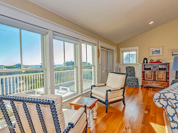 This beautiful ocean view home was designed by a notable island architect and then sturdily built by Parker Dudley with high quality custom finishes. Not rented, family use only and carefully maintained. The reverse floor plan features four ample bedrooms, all ensuite, with large closets and storage areas throughout the home.. From the covered front porch, enter the foyer and note the property's high-end finishes like hardwoods and wainscoting. To the right, a bright corner Queen suite features-like all the home's baths-a marble vanity and walk-in tiled shower. At the end of the hall, another family-friendly-sized bedroom with ensuite, currently used as a den, offers egress to a deep, water-facing screened porch-perfect for rocking to ocean lullabies. Back inside down the hall is the laundry and another sunny corner Queen suite tendering marine vistas and a luxe bath with a crushed glass/marble vanity and pebbled shower. On the other end of this level you'll find the elevator, a small foyer with built-in bench at the top of the inside steps and the light-filled King Master suite. Relish seascapes from this haven's multiple windows or step outside through its private access to the screened porch. This suite also boasts a walk-in closet, wall of built-ins (including a desk) and an oversize spa-like bath with dual vanity, glassed shower and pedestal tub. Upstairs, the open floor plan's vaulted ceiling and surrounding windows ensure plenty of natural light and spotlight a panorama of South Beach. Enjoy the sight and sunshine from the large back deck or just inside from the spacious living area, anchored by a gas fireplace and housing not only a comfortable conversation space, but also a cozy reading window bench and stuffed chairs. The nearby kitchen's Monogram stainless appliances, plentiful storage and yards of counters will delight chefs. Snack here at the breakfast bar, al fresco on the deck or at the elegant table in the adjacent dining area.