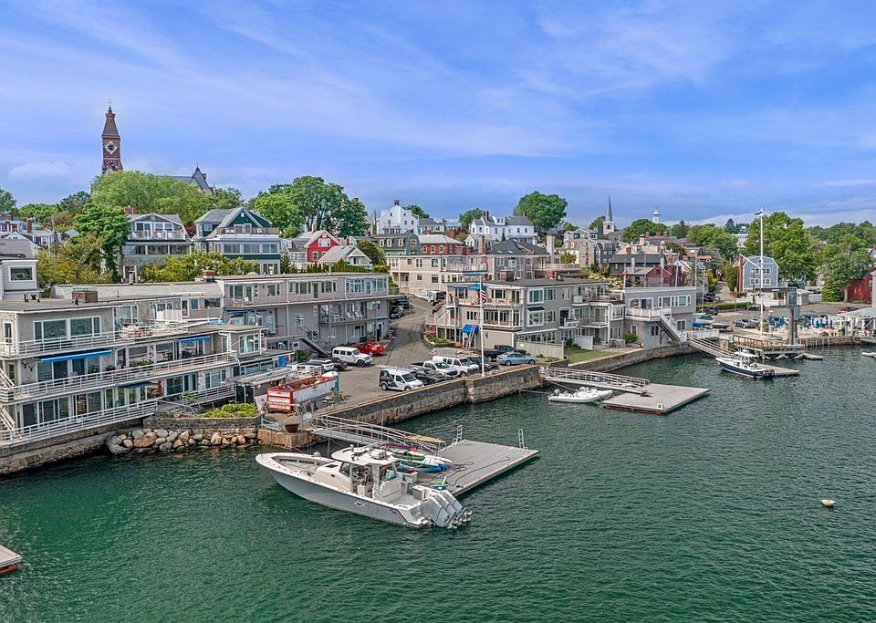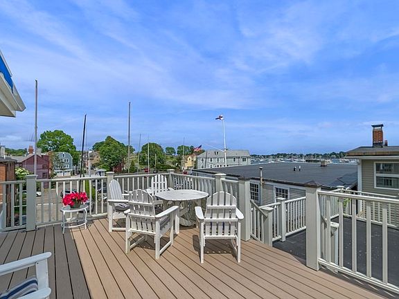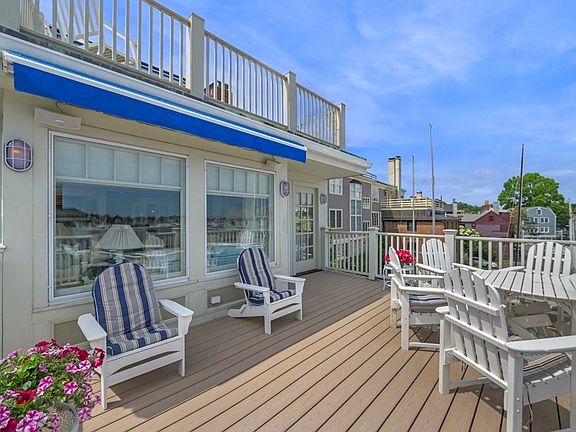 Delightful 1st floor private entry waterfront condo in the heart of historic downtown Marblehead. Renovated throughout. Stainless and granite custom kitchen feature center island with seating, open floor plan & views to the harbor everywhere. Dining area and sitting area w/ gas fireplace combine with spacious family room and direct access to a fabulous (newly updated) expansive harbor view deck. Awning and exterior sound system. Main bedroom with ensuite custom double vanity full bathroom with spa feature. Full size walk-in closet, hardwood flooring, plantation shutters, recessed lighting and ceiling fan. Convenient main level full size washer & dryer. 2nd bedroom currently used as study features french doors and large closet. Two docks that incorporate kayak/paddle board storage are separate from HOA. 2 car parking and private spacious storage unit. Central Air conditioning and new forced hot water baseboard heating system. Well run association with professional off-site management.
