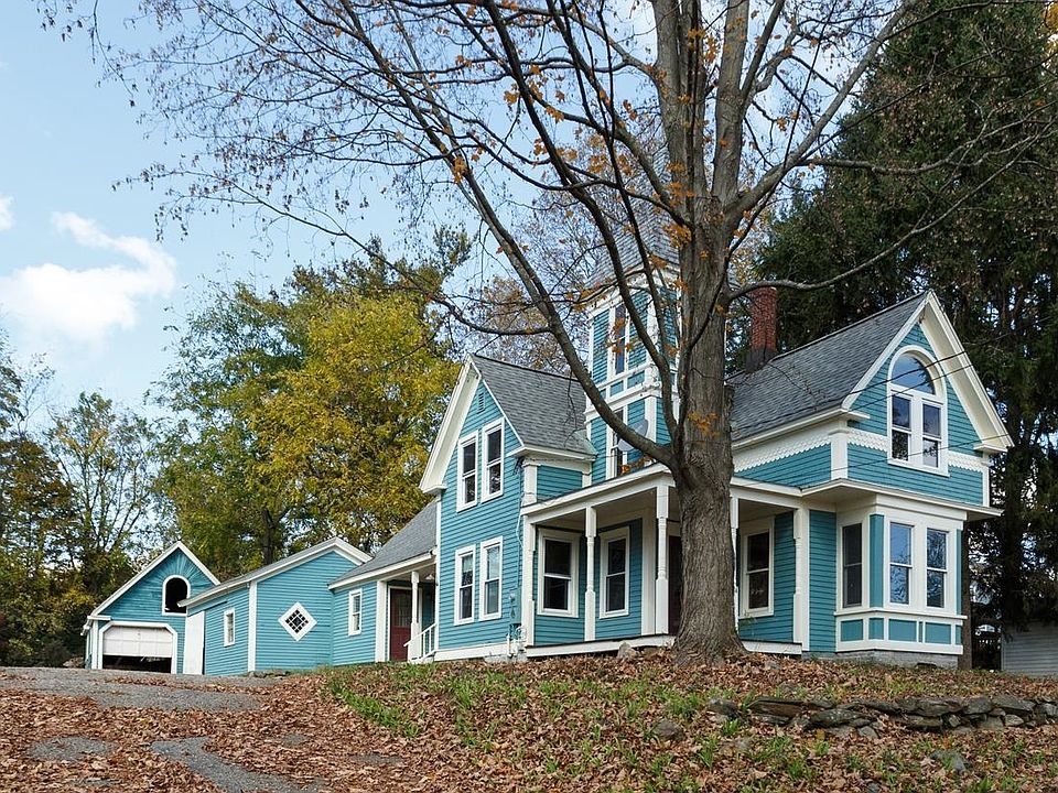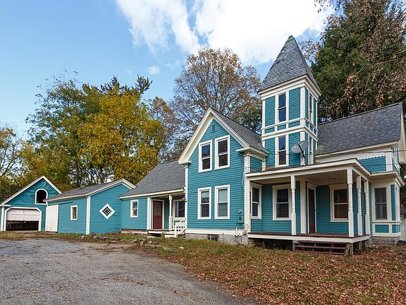 This painted lady is ready for the ballroom... Wonderful Derry Victorian with tons of charm. New roof, kitchen, paint inside and out, flooring and more. Keep the restoration going and add your own flair. There's nothing more unique than a Victorian and this one is no exception. The home features a welcoming open concept with large eat-in kitchen area complete with vaulted ceiling, skylights, wood stove, breakfast nook, hardwood and tile flooring and natural woodwork. Off the kitchen you'll find an inviting living room with built-ins, hardwood flooring and an elevated reading nook. Just off the living room behind the stairs leading up is a first floor bedroom with windows looking down from the front of the home, providing great natural light. Upstairs is an attractive 2nd bedroom with cathedral ceiling and Palladian style window. You'll also find an office with exterior balcony and a third large bedroom with walk-in closet. Full bath on second floor with laundry and 1/2 bath on the first floor. This inviting lot is very peaceful with mature trees and perennials. Super convenient to downtown, shopping and the highway. The home also abuts the Grinnell (right out back) and a short walk to Hood Middle School. She's gorgeous!