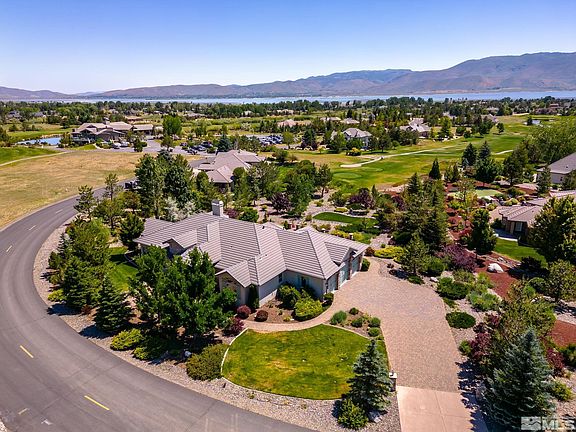 Gorgeous panoramic views of the surrounding mountains and Washoe Lake!!! Nestled within the gates at Franktown Estates, home to one of Northern Nevada's finest championship golf courses and Toiyabe Golf Club. This beautiful single story home is right on the golf course along the 10th T Par 5 and is close to the clubhouse. One can truly enjoy the golfer's lifestyle! Ample amounts of natural light beaming into this open floorplan., Great Room boasts high ceilings with inset lighting and speaker system and a beautiful Tuscany style gas fireplace. Great Room also highlights: built in oak entertainment center, granite countertops, built in oven and microwave, 6 burner gas cook top stove, center island with vegetable sink, butler's pantry complete with wine rack and wine cooler, second large walk-in pantry, breakfast bar, breakfast nook and office desk area. French doors lead out to the amazing backyard oasis. Relax by the cozy built in gas fireplace, while entertaining family and friends with a built in out door kitchen, complete with gas BBQ, mini fridge and sink, putting green right off the golf course and plush green mature landscaping with cherry and peach trees. Other great features in this home include: 4 Car/RV Garage complete with large storage closet, workshop and dog washing station, separate formal Dining Room with coffered ceiling and gorgeous chandelier, travertine floors, Tuscany style guest and half bath and large secondary Bed Rooms. Primary Suite boasts calming sitting area with coffered ceiling and private access to outdoor fireplace, two separate vanities, doorless shower, jetted soaker tub and large walk-in California closet! New windows, exterior paint and sprinkler system.