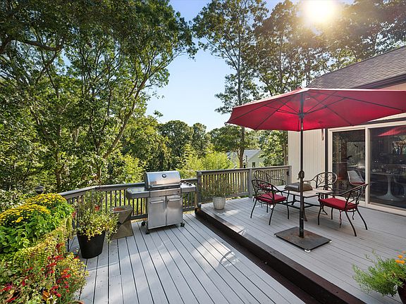 This inviting turnkey home in the historic Ninevah beachfront community offers a cozy mix of comfort, privacy, and classic Sag Harbor charm with a modern twist.Steps from a serene private beach with deeded mooring rights, the 1990 home is and minutes from the boutique shopping, theater and restaurants of the downtowns of East Hampton and Sag Harbor. The open-concept layout has four bedrooms, including a first-floor primary suite, and a finished lower level with a recreation room and half bath, ideal for guests. A room directly off the living room and near the entrance is perfect for a home office. Expansive outdoor decks with lighting back up against a nature preserve to provide an intimate backdrop for peaceful bird-watching, as well as al fresco dining and entertaining. Set on nearly two-thirds of an acre (0.65) in the village, it has mature landscaping with plenty of room to add a pool or an accessory structure. Whether you are seeking a weekend retreat or a year-round Hamptons home, this Sag Harbor property combines effortless living with timeless style.