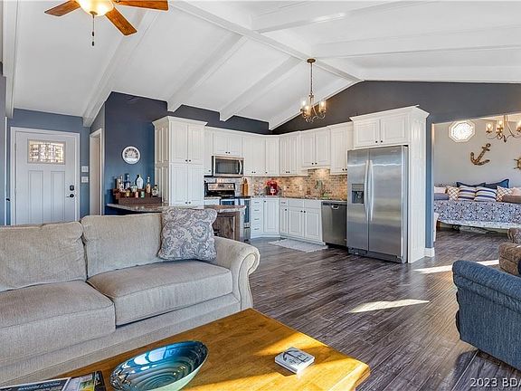 Just about as new as you can get without being new. Everything has been redone on this house including Diamond Coat siding, Anderson and Pella wood windows and doors. A new roof, full kitchen and 2.5 bathrooms, new flooring and paint throughout. Two living areas inside and a large den/office that could be great fourth bedroom. The primary suite is on the main level with a step in shower. The outdoor living space is PHENOMENAL with new stamped concrete, a cool Pergola and stone outdoor fireplace. A big view of Jackson Branch cove behind Hawiian Island and a main channel view. Don't miss this RENTABLE home with detached two car garage and additional parking for 8+ cars. A new septic, new well pump, all new electrical and plumbing in 2017 and AC unit in 2019. A separate storage shed and a lakeside porch swing to enjoy the LAKE activities and swing your cares away. Just a short drive down W-15, you are minutes from the Strip, great dining and shopping. Come see 24 Lockwood Rd today!