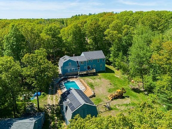 Beautiful quintessential gambrel colonial situated on 4.23 acres located on one of Mendon's most desired country roads. This equestrian property boasts 2 large barns and 1 run-in shed with a total of 13 stalls, 2 tack rooms, 2 hay lofts, 4 corrals, plenty of room to ride & heated salt water in-ground POOL. The house itself has been renovated and includes a BRAND NEW CUSTOM BUILT two story IN-LAW or AU PAIR with private access from the rear and also interior access to the main house. The house has a total of 3353 SqFt and consists of 5 bedrooms and 3.5 bathrooms. The main house consists of 4 bedrooms and 2.5 baths with a 2008 built kitchen, spacious living room with hardwood floors, dining room w/ parquet flooring, family room w/ carpet and woodstove insert, updated bathrooms, all new flooring in bedrooms, all new paint and so much more. Newer WINDOWS, ROOF, SLIDER, BOILER, SOLAR PANELS, KITCHENS, WATER HEATER, FLOORING, WELL PUMP.. Last 3 months electric- total $0.00!!