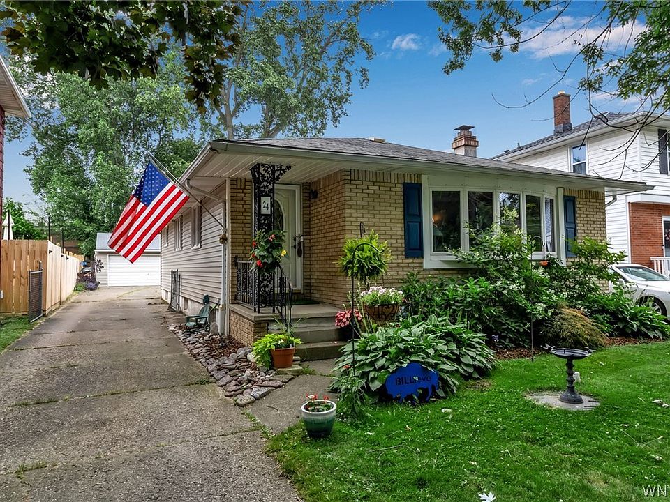 Welcome to 24 Luzerne, a brick ranch in the Sweet Home School District! This home features a fully fenced yard and is located around the corner from Ellicott Creek Park and Ellicott Island Bark Park (off leash dog park). Inside, you'll find a large living room with beautiful hardwood floors and a wood-burning fireplace. The spacious kitchen offers plenty of counter space with a dining area as well. Replacement windows throughout ensure energy efficiency and natural light. The property also includes a huge basement that has a versatile rec room for extra living space and still plenty of other storage. Outside you'll find a fully fenced in yard and a deck, and a massive 2.5-car garage. This is the perfect home of a first time buyer or someone looking to downsize. Showings begin at the open house Wednesday June 26th at 5pm. Negotiations will begin at 3pm Monday July 1st.