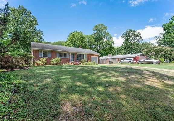 Beautiful brick rancher in Newport News at end of a cul-de-sac. Opening onto the cozy living rm, you’ll feel immediately at home in this classic beauty. Laminate floors are found throughout much of the home, while the gorgeous tile flooring is a highlight in the kitchen. The kitchen comes with plenty of cabinetry, convenient eat-in area, newer Corian counters, & beautiful backspace - even offers a window above the sink that overlooks the backyard. Master bedroom is very large, in addition teo well sized bedrooms. Nice big back yard for all your family gathering and entertainment! This home won’t last long. Make your appointment today!