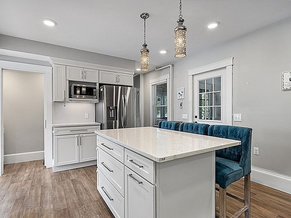 Blending original charm and detail of an older home with modern amenities of a newer home. This home features over 1,826 sq ft of living space, 4 bedrooms, 1.5 bathrooms. Replacement windows throughout house make for sun filled living, fully applianced kitchen with quartz counter tops, island bar, wood stove, large living rm with hardwood, beautiful hardwood stairs leading to second floor with 3 bedrooms and a full bathroom. Some of the other amazing amenities include, walk up (semi-finished) attic space, newer roof, updated electric and boiler, beautiful screened in porch, private back yard. All in great Templeton location, close to center of Baldwinville.